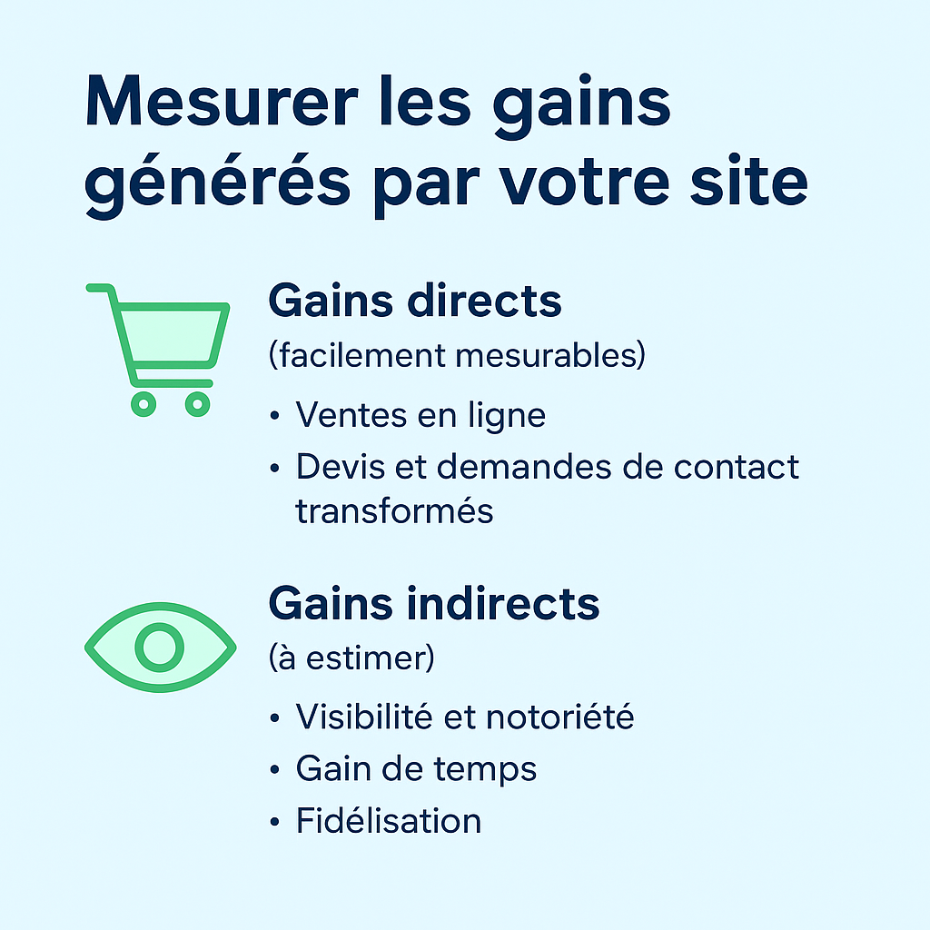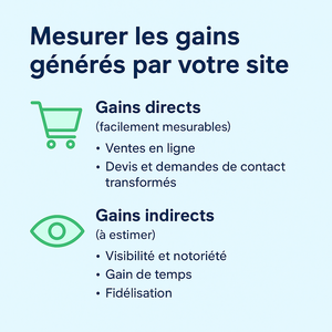 Gain de temps Un site bien conçu réduit le temps passé à répondre aux mêmes questions. Si vous économisez 5 heures/mois à 50 €/heure, c’est 3 000 €/an de gains indirects.